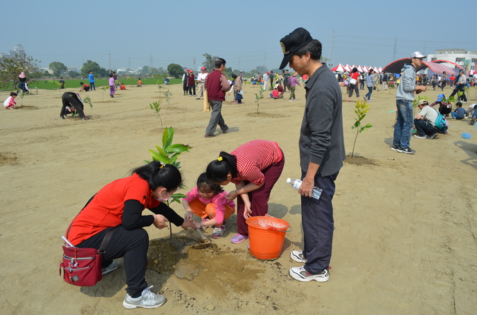 施克和示,在雲林種樹是民眾對生態環境的反省,縣府自2010年開始大力推動植樹減碳,兩年內造林面積增加至1,109公頃,為全國表現最優異的縣市,如今植樹造林已成為全縣重要的活動之一,更與今年農博「碳匯林場」固碳的主軸相吻合,鼓勵民眾落實生態環保之概念,並感謝大家在228一起來種樹,為下一代留下舒適的生活空間。