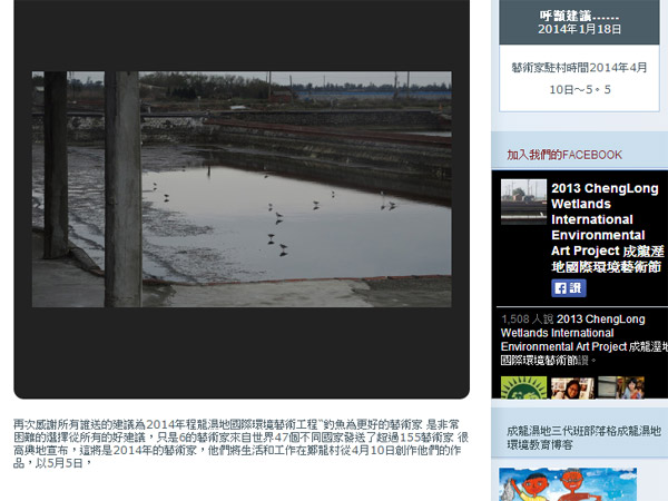 「成龍溼地國際環境藝術計畫」部落格(http://artproject4wetland.wordpress.com/)