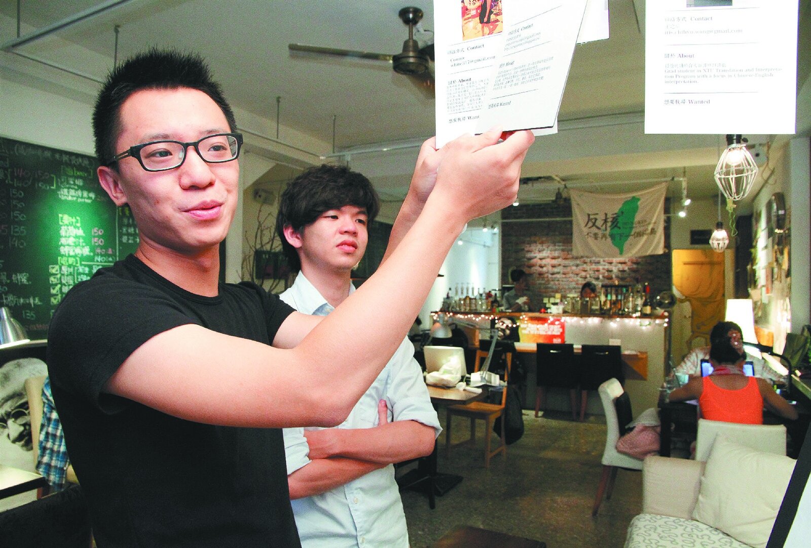 混公社負責人游適任(左)讓進駐者、咖啡廳客人都可登記自己專長,以利彼此尋求合作的機會。(截取自聯合報)