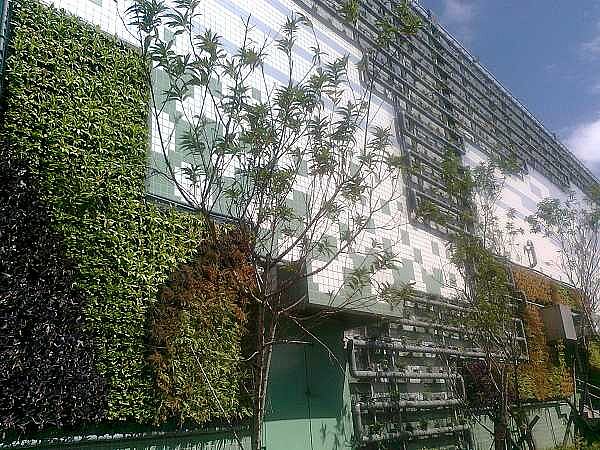 位於淡水河旁的迪化污水抽水站緊鄰迪化污水處理廠,為台北地區污水系統之重要樞紐,已於101年10月底完成外牆綠美化工程,外牆裝設LED光雕及綠美化植栽,綠化工程在環河北路側牆綠化面積計為343平方公尺,為豐富綠美化色彩,栽種綠色的黃金葛、雪茄花、山蘇、腎蕨外,再搭配紫紅色的紫錦草及金手指變葉木,運用顏色變化勾勒幾何圖形,此外酒泉街面的外牆採用植生管計519公尺,種植蔓藤類植物,假以時日牆面將形成綠色瀑布。