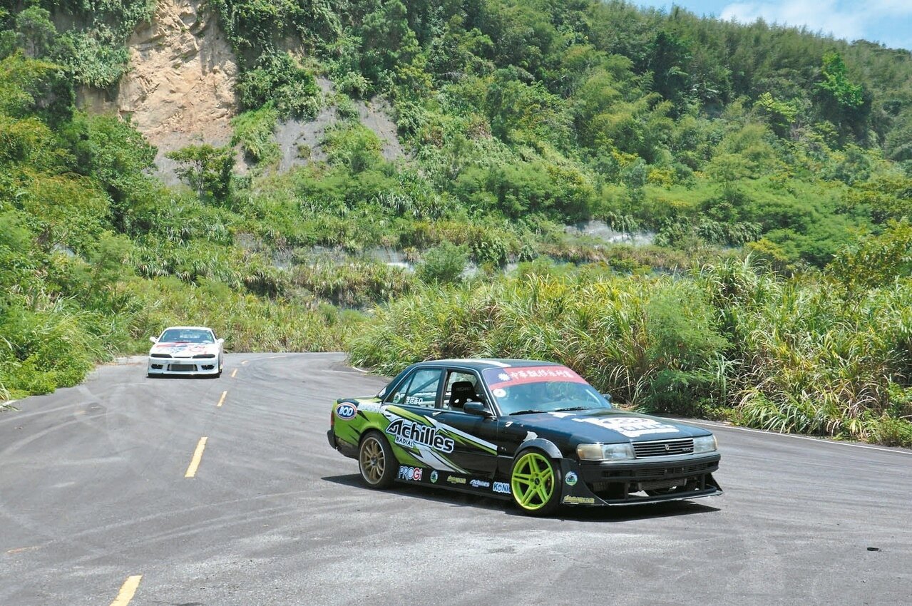 中華賽車競速競技協會臉書粉絲頁號召下,昨天陸續有10輛改裝車拖吊進入場地,車友戴上安全帽依序上場競速,引擎轟隆作響,開始在環形車道上飆速、過彎,不時還有車友秀出「正甩」、「逆甩」的技術。