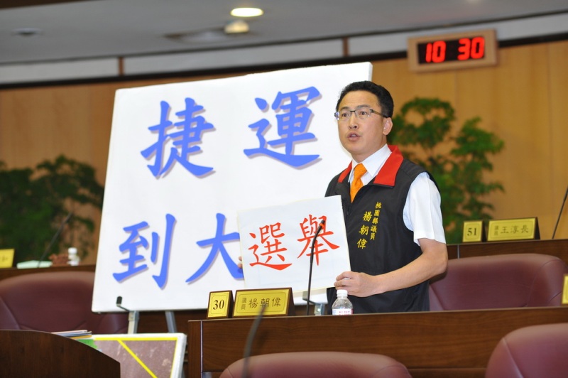 楊朝偉另質疑,經濟部北水局因清淤工程,大溪鎮台七線、台四線等重要觀光道路,經常被重車輾壓導致千瘡百孔,北水局委外清淤,石門水庫清淤土石可賣給廠商,每年獲利數億元,基於使用者付費觀念,他要求縣府應該向北水局要求,將回饋金回饋給公路總局或縣府作為修復或維護道路之用。