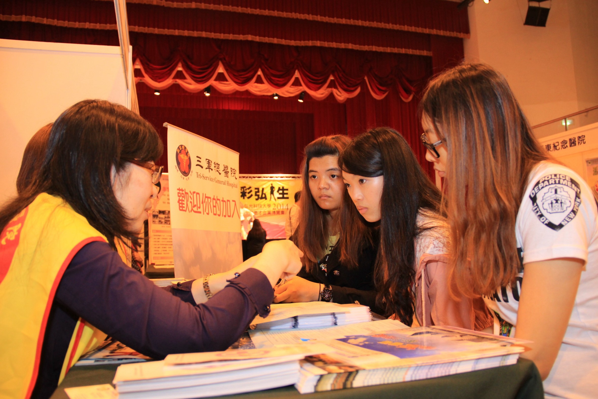 除了護理人員之外,餐飲、觀光界的人力缺口也不小,多家知名企業如瓦城集團、這一鍋、春水堂、雲品酒店、長榮桂冠酒店等都到場設攤,提供不同產業的就業選擇,吸引不少相關科系學生詢問,人氣不比醫院低。
