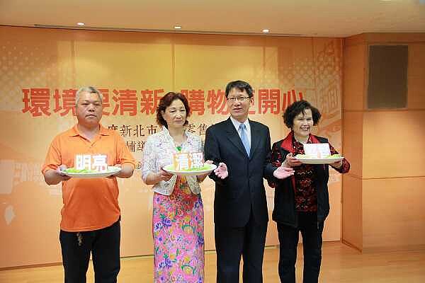 經濟發展局局長葉惠青與去年榮獲金牌獎的泰山區公有市場、汐止區金龍市場及瑞芳區第二市場的自治會長等出席記者會。(記者黃村杉攝)