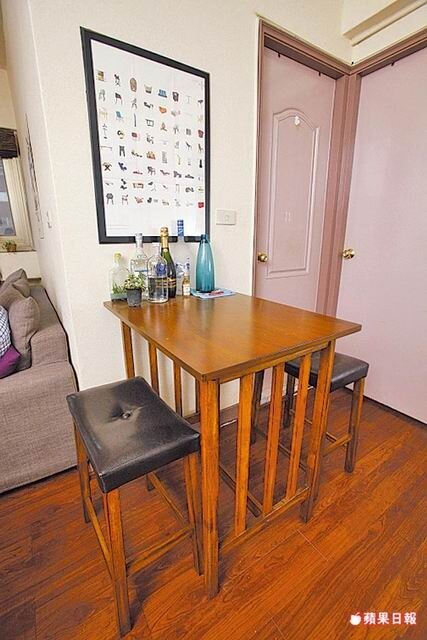 一個大男生的家,出現了粉嫩的橘色壁紙及紫色門片,是怎麼一回事?原來這個房子的前身是SPA美容工作室,租下他的Vincent,沒想要更動,他花了3天時間,快速地把家具買齊,顏色盡量挑選黑、灰、白等中性色,調和原本較偏女性的柔媚色彩。
