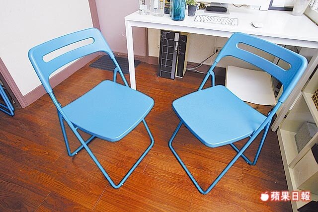 單身的他除有收藏陪伴,假日也常有朋友來串門子、熱鬧熱鬧。Vincent指了指一旁藍色的椅子說:「這個椅子便宜又時尚,我一口氣買了好幾張。」現在一旦沙發坐滿,Vincent就會把它們給請出來,大家喝喝調酒,彈奏一曲烏克麗麗,盡情享受小酌暢談的樂趣。