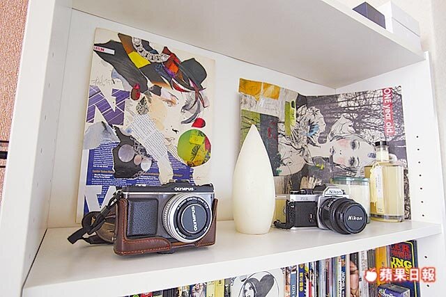 牆面留白處,則有不少的掛畫、海報和明信片。雖是常見的布置手法,但因具有意義,而有了存在的趣味和理由。「這張明信片是朋友從國外寄來的;嗯,這畫是我自個兒畫的;這個海報我超喜歡。」不是隨意買個現成品裝飾,每個物件都承載了他不同的回憶。