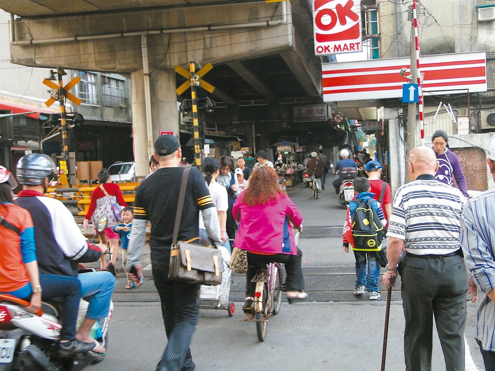 另外還常見「老人家硬闖」,買菜的阿公、阿媽因步履慢,老是要硬闖平交道,看柵工都得去勸阻,還得扶著老人家趕緊通過。還好巿府整頓橋下攤販,朱海同說,以後驚險場面可能就會少了。