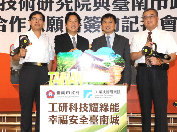 臺南市賴清德市長與工研院徐爵民院長5/16共同簽署綠能科技合作意願書,宣示未來將引進工研院的綠能研發資源,提升消防安全、古蹟監控維護、發展綠能產業,帶動大臺南邁向安全、綠能、幸福的願景。