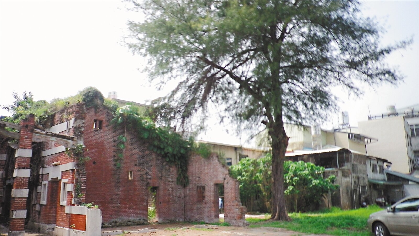 大林庄長江文蔚的豪宅「省園」,如今殘存牆面。(記者謝恩得/攝影)