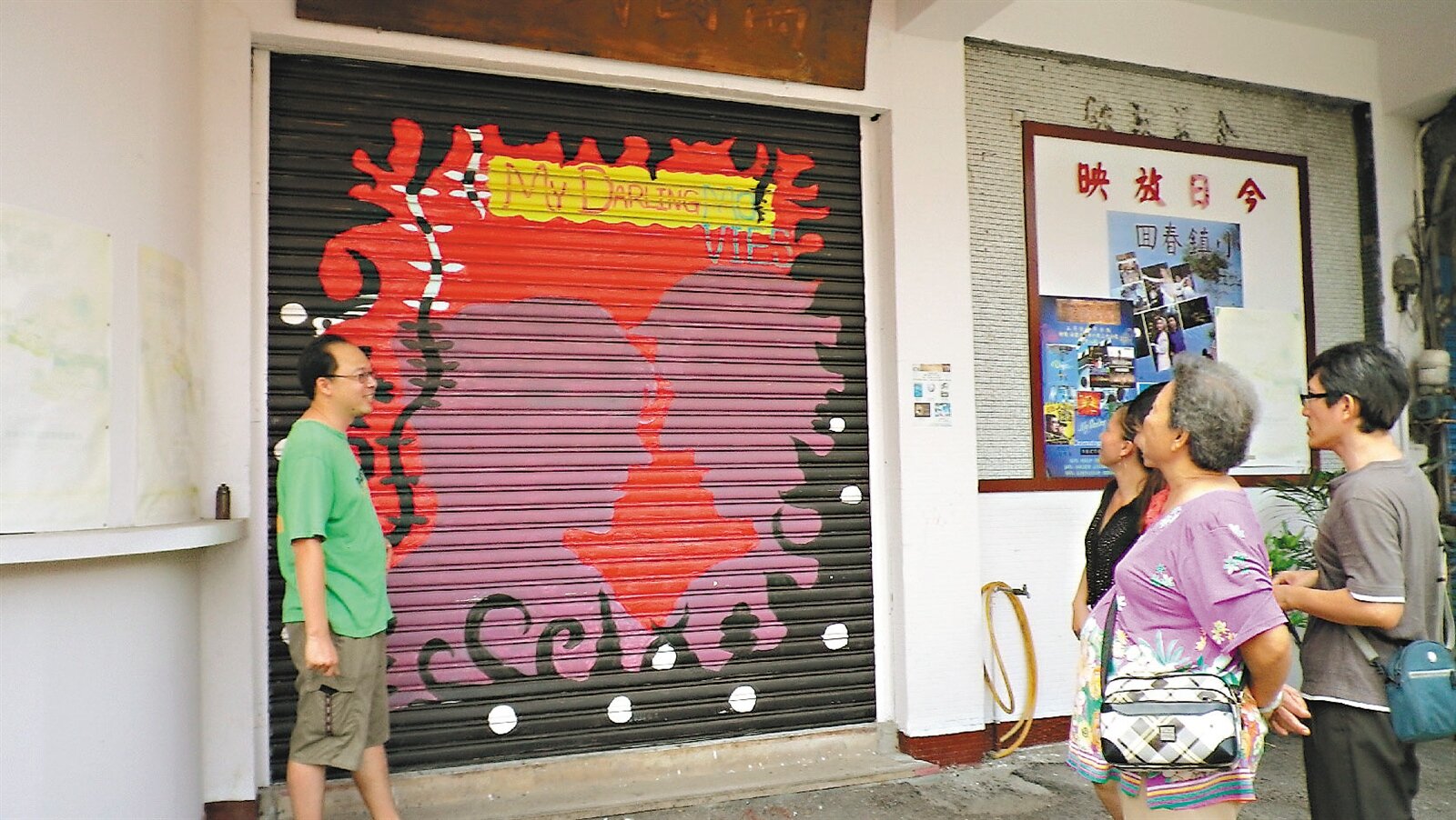 江明赫(左)說明萬國戲院的故事。(記者謝恩得/攝影)