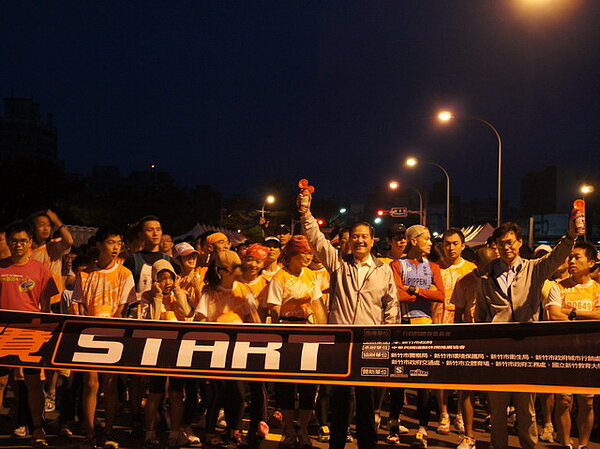清晨溫差相當大,一早天還沒亮,就有許多喜愛路跑運動的朋友開始集結在建功一路與水源街口辦理報到手續,領取號碼牌,並在大會安排之下進行暖身活動。