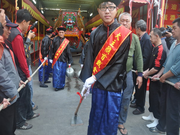 在信眾們齊力將「王船」拉出王船廠,經過試俥順利圓滿,還有俗稱的開水路古禮,向千歲爺和天上的神明報告,國定古蹟金唐殿2014甲午年五朝王醮拉開序幕。