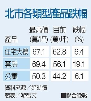 北市各類型產品跌幅。