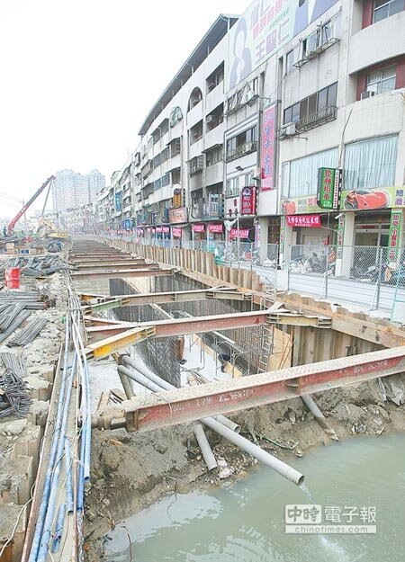 高雄氣爆滿月後,重建工作正積極進行中。圖為凱旋路重建情況。(截取自中時電子報)
