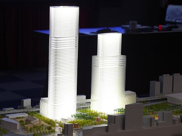台北市長郝龍斌11日下午,結束為期二天的連江縣離島醫療業務交流合作考察行程,返回台北,在機場受訪時表示,對於監察院糾正台北車站C1、D1聯開案(台北雙子星開發案),市府會虛心檢討,未來除對一定金額以上的大型招標案,都將組成跨局處專業團隊負責,也會提高保證金,並加強外部監督機制。
