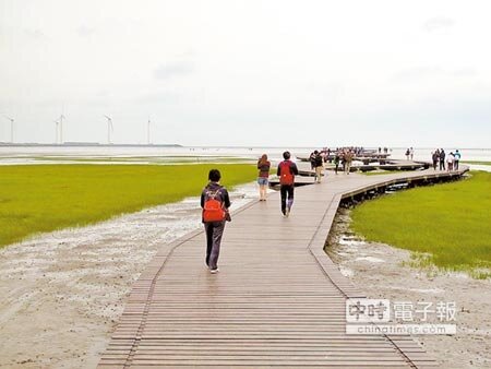 為避免民眾一再誤入觸法,市府農業局特建置500公尺長的木棧道,「把遊客留在棧道上,溼地留給潮間帶生物」。(記者趙麗妍攝)