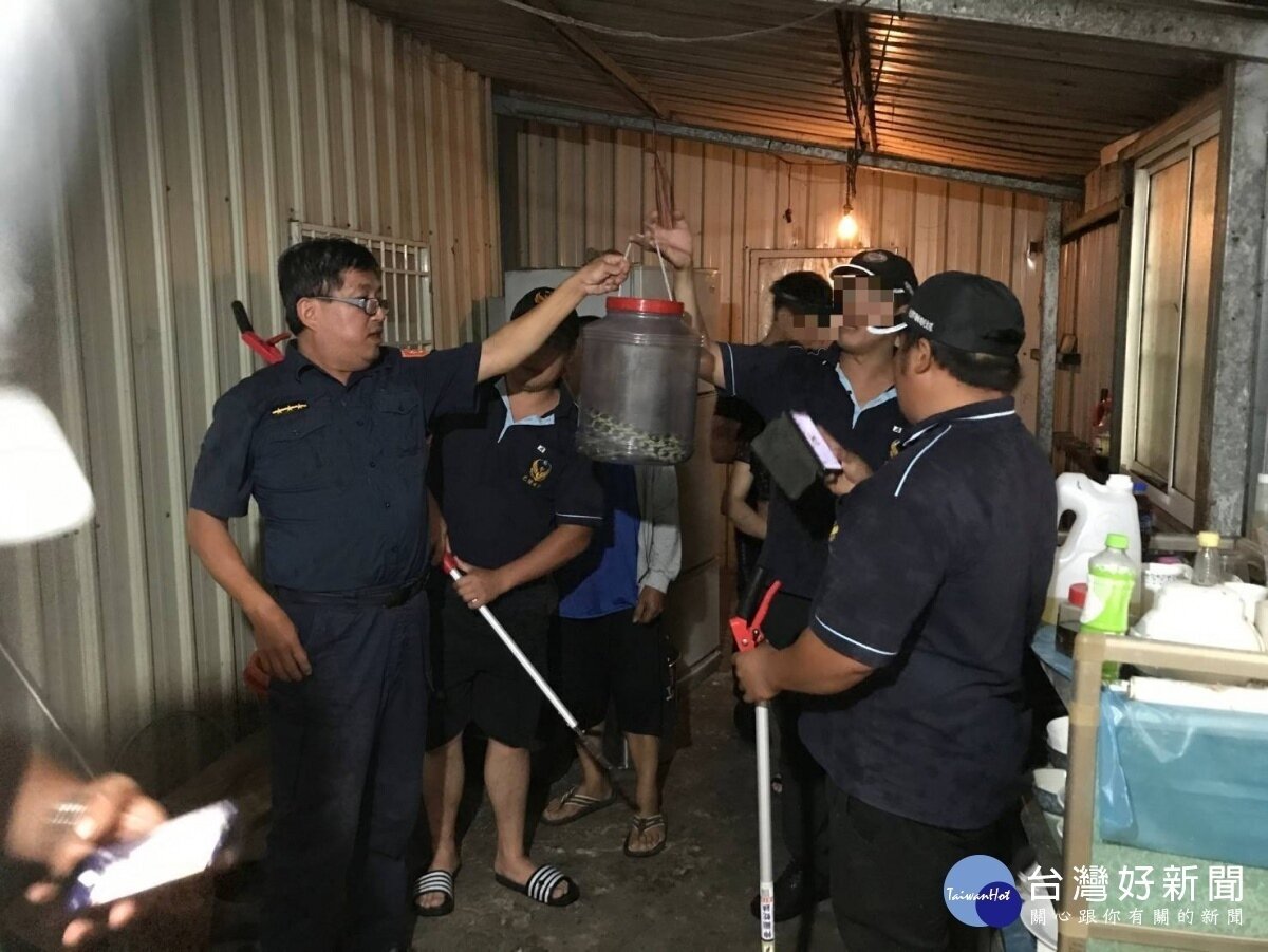 大蛇進屋嚇壞老夫妻,警、消合力捕獲。圖/台灣好新聞
