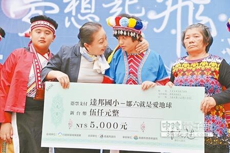 嘉義縣環保局與阿里山鄉偏鄉部落學校合作,舉辦「資源回收,夢想起飛」計畫,透過做資源回收的比賽評鑑,依分數給予師生獎金,幫學生們圓夢,10日上午4校組隊獲獎師生特地南下嘉義縣政府領獎,其中達邦國小「鄒六」隊伍獲得5000元推廣獎金,上台領獎的學生裡,73歲的方富美和洋佩君特別受矚目。
