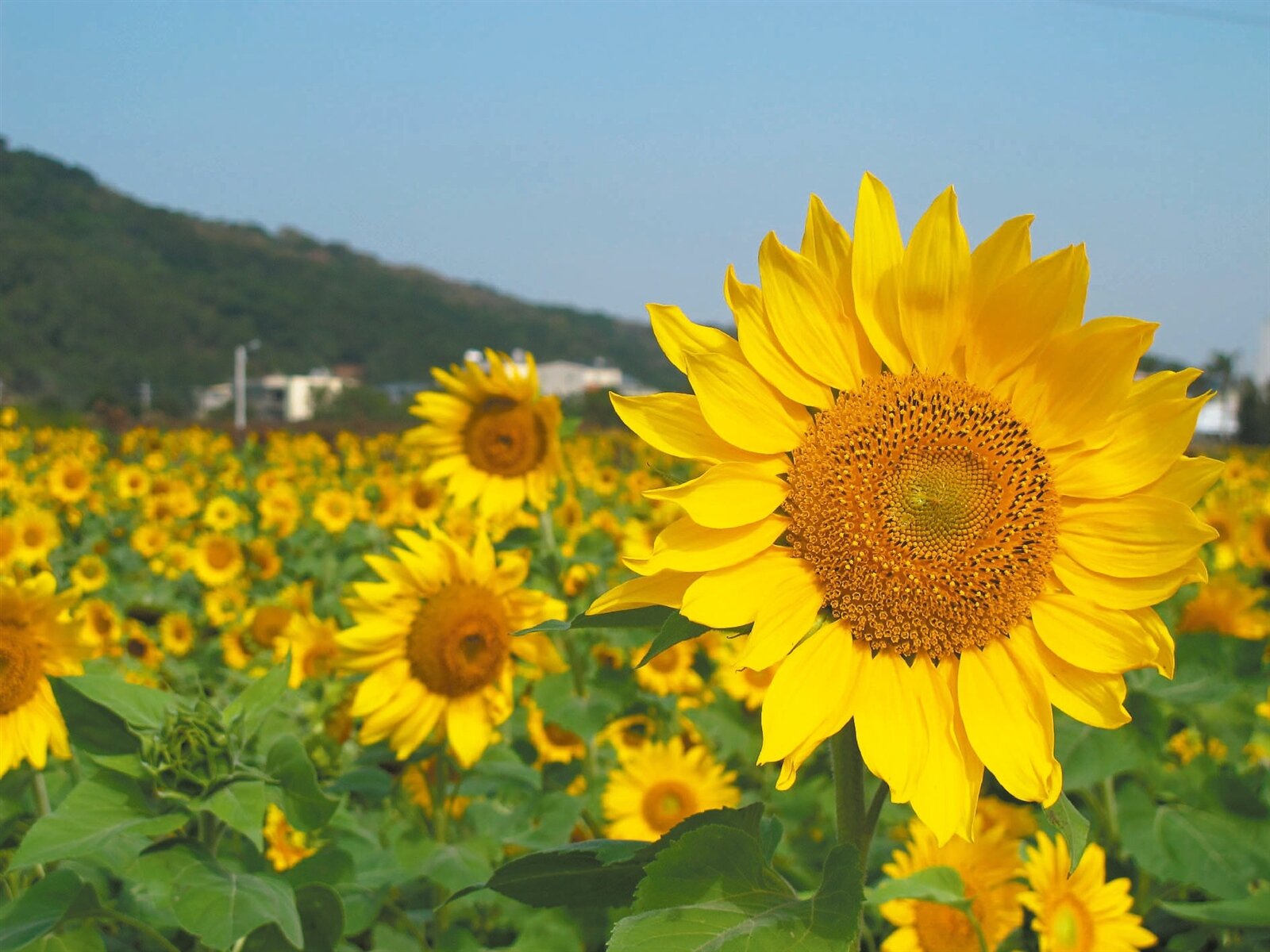 從12月初起,通霄鎮花海盛開,金黃色向日葵隨風搖曳,充滿生命力。(記者黃茹婷/攝影)