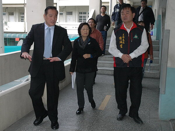 新竹市長許明財11日率同工務處長陳炳煌、綜合工程科長陳賢仙,先後巡視市立頂埔、民富國小,就兩校提案申請體育設施整建、兩處廁所整建工程,瞭解現況及面臨困難。對校舍老舊若有而耐震勘慮的情形,由工務處、教育處進行資料彙整,提送教育部補助辦理補強。