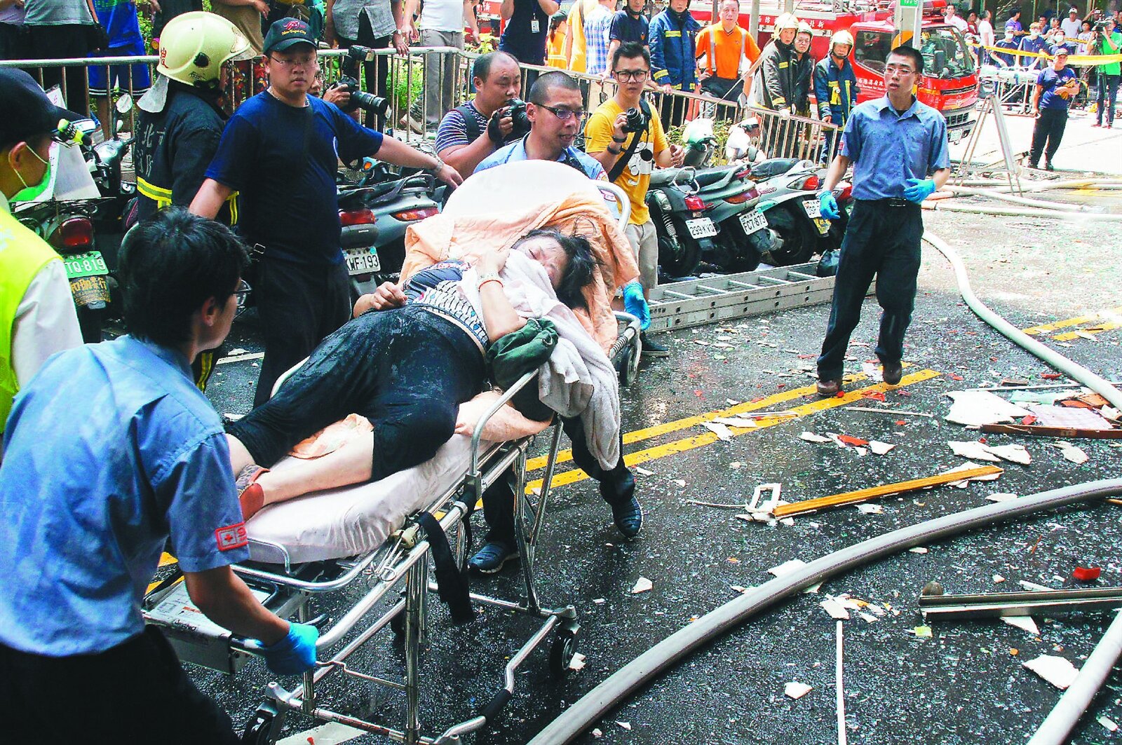 新店區安康路瓦斯氣爆,消防人員緊急將傷患救出送醫。 (記者王長鼎/攝影)