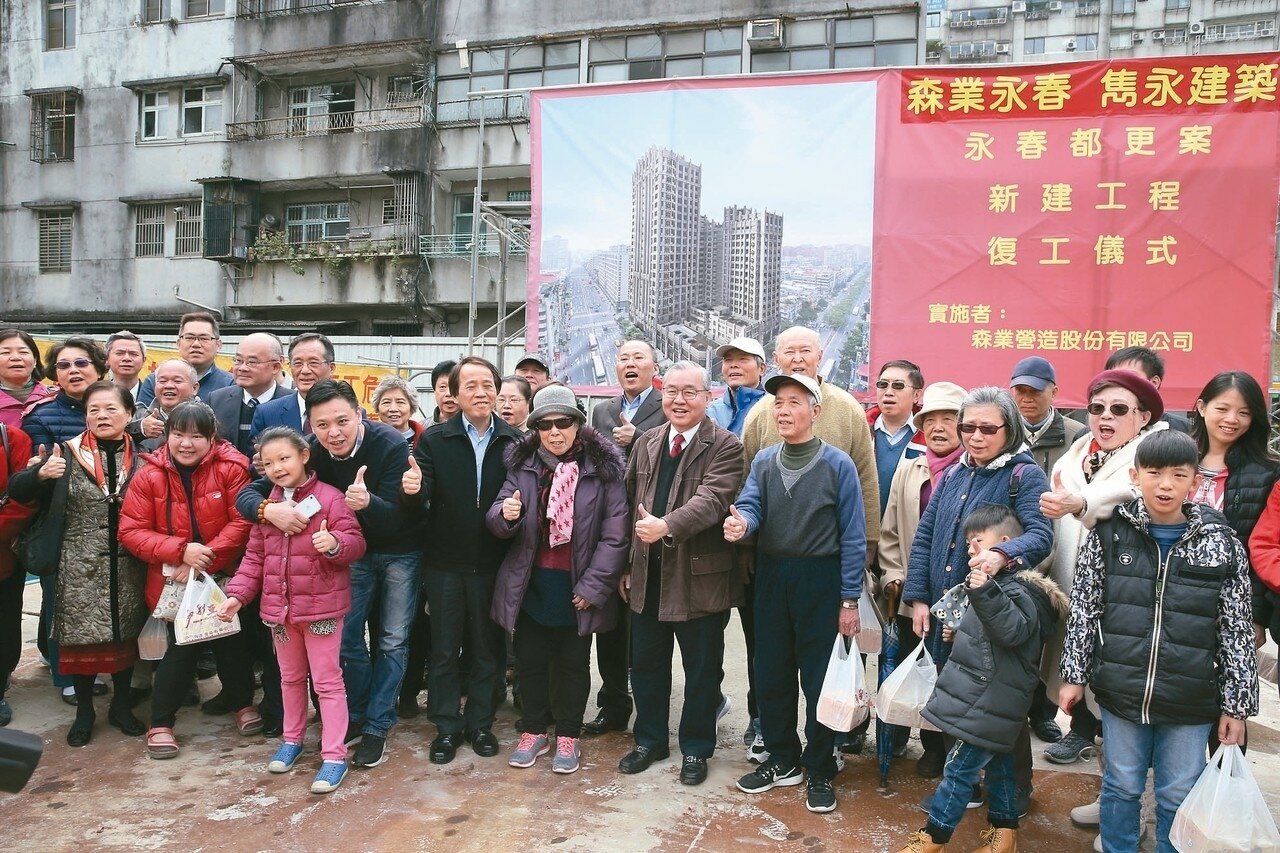 一波三折的台北市永春都更案,昨正式復工。副市長林欽榮、同意戶齊聚工地,祈福工程一切順利,林也呼籲不同意戶「放下吧」,讓所有同意戶早日回家,全案預計2020年5月完工。