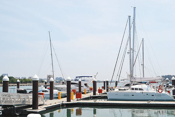 台南市安平港的新遊艇碼頭完工後,已吸引帆船來此停靠。 (圖/鄭惠仁攝)