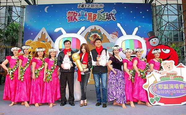 新北市歡樂耶誕城活動重頭戲將在22日及23日登場,新北市政府觀光旅遊局日前舉行「2012新北市歡樂耶誕城」卡司記者會,記者會上首度公佈媲美金曲獎的超級星光卡司,名單包括女子天團S.H.E、演歌雙棲的楊丞琳、王心凌、潘瑋柏、超人氣歌手炎亞綸、安心亞以及實力派歌手盧廣仲、亂彈阿翔、楊宗緯、徐佳瑩、嚴爵、郭靜、林俊逸…等超級卡司,搭配華麗的燈光、舞台,將在兩天的晚上,帶新北市民一個嶄新體驗。
