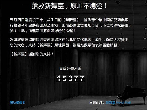 搶救新舞台,原址不熄燈!連署活動網頁。