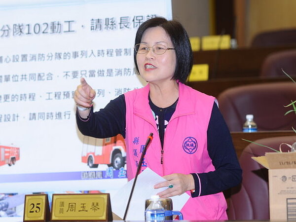 周玉琴議員以一張有六個排水涵管照片指出,這些工業區內的工廠排水涵管,排出臭味污水時,等環保稽查人員趕到時,早已沒證據了,只能望著暗渠興探。她認為將每個排水涵管標明工廠名稱是刻不容緩,若是廠商不作改善,乾脆就用水泥把排水涵管封死。並建議縣政府應儘快想辦法,興建汙水廠徹底解決問題。