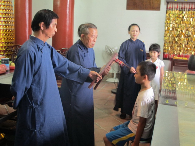 明新書院辦理該項點竅活動,參與者先寫好「開竅啟智」報名單,跪在文昌帝君座前,焚香誦念疏文,祈求心神寧靜、文思泉湧,科甲聯登;再由鸞生以桃木製的毛筆,沾上朱砂,即為朱砂筆輕點學子們的額頭「點玄靈」,再飲用由魁斗星君處請示而來的「聖水」,完成啟慧儀式。