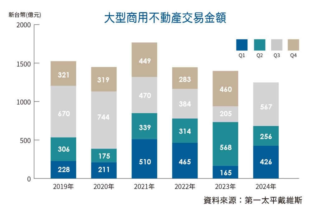 在景氣表現升溫以及科技業需求旺盛帶動下,國內商用不動產與土地買氣明顯增溫,根據國際商仲第一太平戴維斯統計,今年第三季全台單筆交易金額3億元以上的大型商用不動產交易案,總金額達到567億元,季增率高達121%,年增率176%,寫下20季以來最大交易規模。與此同時,累計前三季交易總金額達1249億元,年增率33%,成交規模是升息以來的新高。