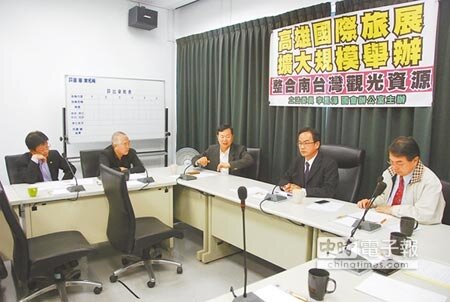 李昆澤昨天在高市觀光局進行「高雄國際旅展擴大規模舉辦協調會」,謝謂君率交通部觀光局同仁與高雄觀光、旅遊相關公會幹部座談。