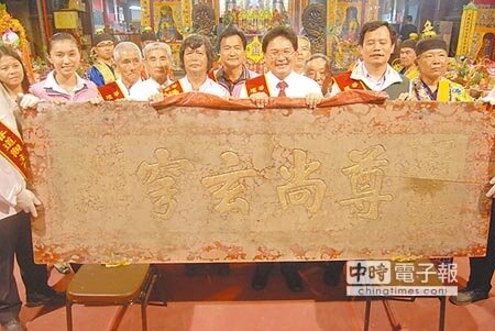 媽祖生日快樂!11日農曆3月23日媽祖聖誕,彰化南瑤宮半夜子時舉行祝壽大典,一方見證南瑤宮天公殿興建歷史,數10年前不知何故流落民間的古匾「尊尚玄穹」,10日深夜重返南瑤宮;重要文物失而復得,成為媽祖的生日大禮,全場振奮。