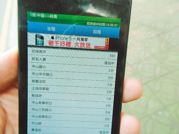 交通局指出,為了讓公車族方便使用公車進站動態資訊,已開放手機Android及iPhone兩大系統下載「桃園公車」軟體程式,利用GPS衛星導航,也可以準確掌握公車進站時間。