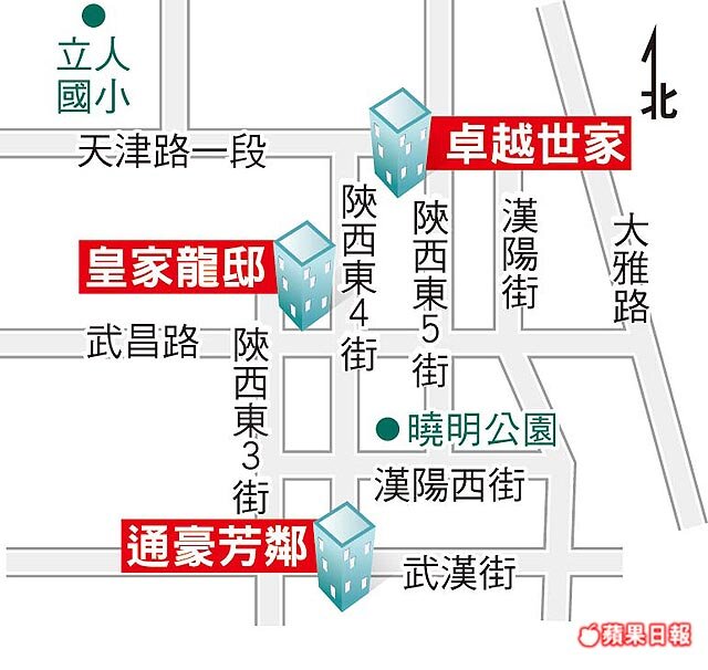 中古大樓「皇家龍邸」位於陝西東4街、武昌路口,距曉明公園約100公尺。待售物件位於2樓,附1個平面車位。