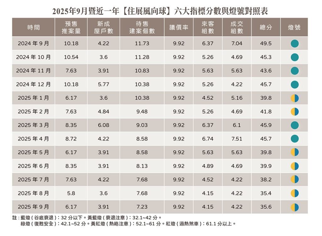 蛇年進入尾聲,房市迄今依然孱弱,買氣大受央行政策、貸款限制影響,觀察代表新建案市場概況的住展風向球數據,在九月份新案追蹤指標建案每週平均來客組數維持十組,成交組數不到一組,分數設定落在最低區間,呈現低無可低狀態,而第三季的銷況均是這等劣況。