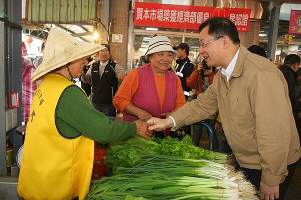 關懷攤商,桃園縣長吳志揚訪視大園鄉三星樂活市場。