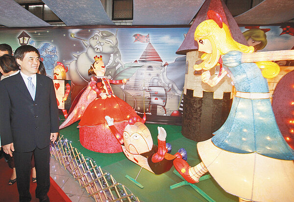 關渡宮花燈已開始展出,不僅有傳統花燈,還有童話故事與馬戲團等花燈。 (圖/陳再興攝)