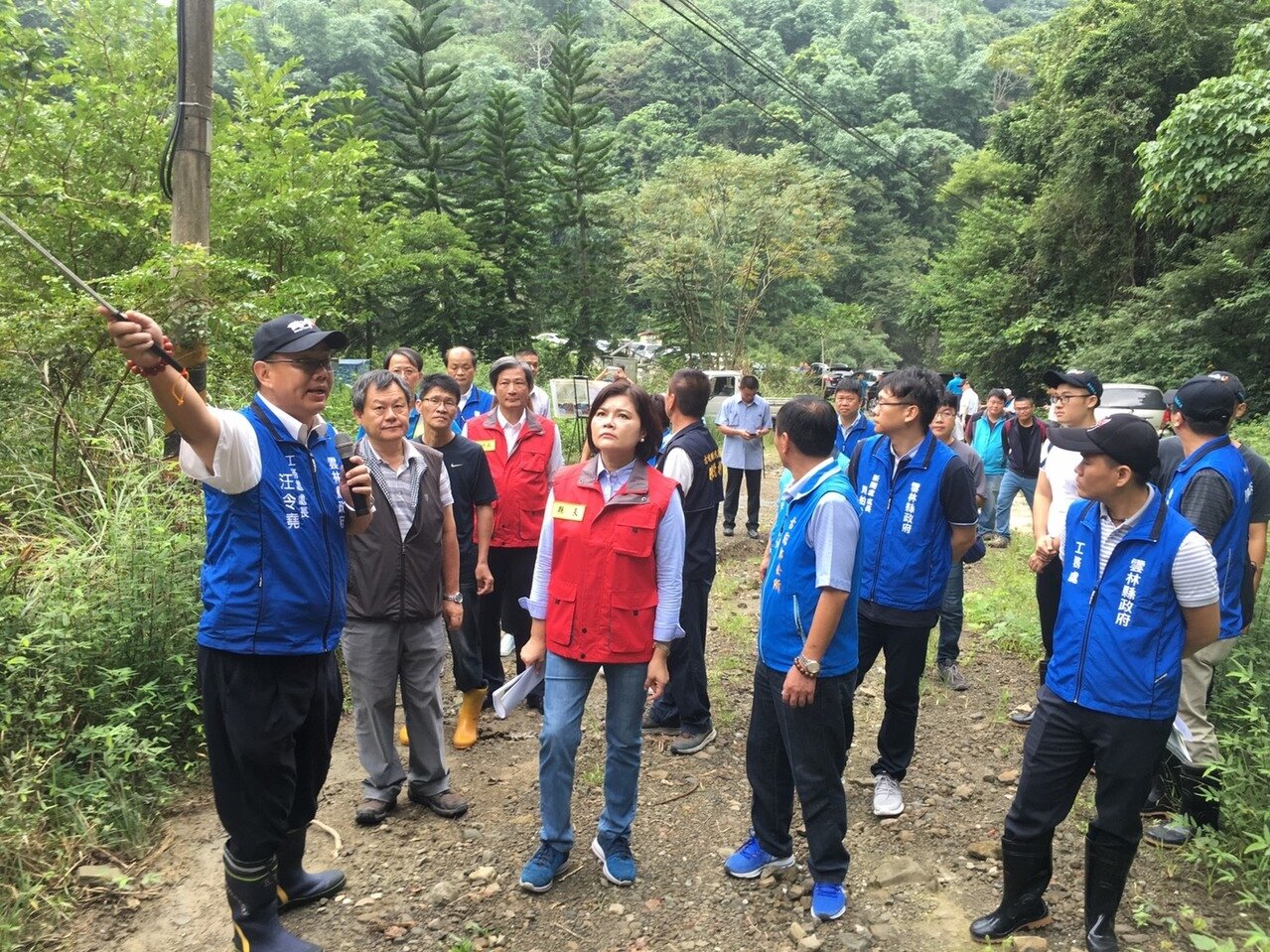 縣長張麗善今天率副縣長謝淑亞、工務處長汪令堯、水利處長許宏博、消防局長林文山、警察局長顏旺盛、新聞處長周柏吟、議員蔡東富、古坑鄉長沈勝騰等人上山踏勘道路工程,包括149甲線新建清水溪橋、149甲線路段修復及邊坡修復工程、古坑雲209線擋土牆崩塌及古坑鐵國山段道路修復工程等5個工地。