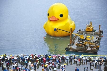 策展單位28日大手筆耗資10萬請黃色小鴨享受「貴妃浴」,一整天才洗一半,今天將盡力讓小鴨恢復原貌。由於鴨身汙垢比想像中難除,策展單位表示,將與霍夫曼團隊研究,每3天洗一次的可行性。基隆黃色小鴨昨上演洗澎澎秀,這次不再只用清水,還加上國外進口天然環保洗劑「simple green」,替小鴨打造貴妃浴,這是黃色小鴨游遍世界各地,首度需要「袒裎相見」被看光,現場洗澎澎唯一展區。