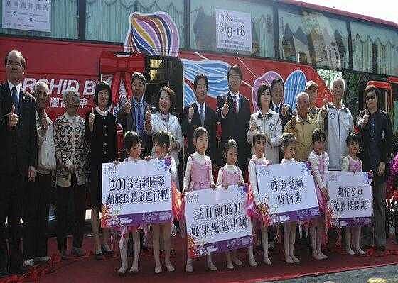 以蘭花意象彩繪的接駁公車啟用儀式,由台南市長賴清德結合與會貴賓們主持,隨後坐上彩繪公車,體驗舒適的接駁服務。蘭展期間,市府提供免費服務,歡迎民眾共同響應低碳環保,搭乘免費接駁專車。