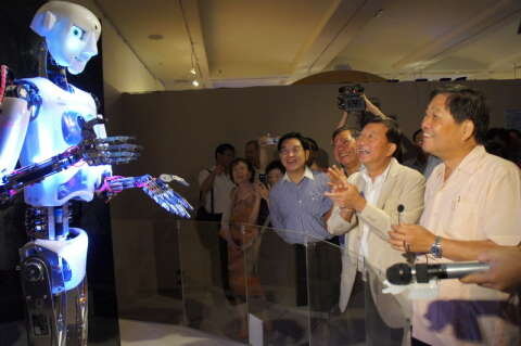 縣府團隊一行參觀了曾作為上海世博會法國巴黎大區吉祥物的智慧機器人NAO,身上設計25個自由度可靈活模仿熱舞、太極等動作,NAO還具聽、說、讀、寫的能力,另外,電影巨作「魔鬼終結者」和「機器戰警」中的賽博格機器人、SONY寵物型機器人愛寶等等,也讓大家眼界大開。