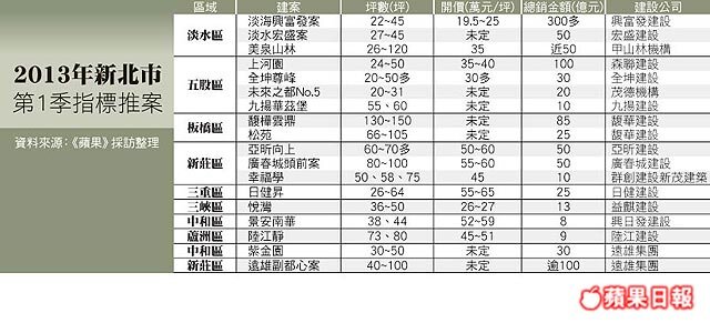 新北市淡海新市鎮及洲子洋重劃區在近期市場的冷清氣氛中異軍突起,交易依舊熱絡。2013年第1季推案量最大的區域,也就落在淡海新市鎮,其中有興富發及宏盛建設都將推出22~47坪2~4房的自住型產品,光是興富發建設1案,總銷金額達300多億元,戶數多達5000戶。