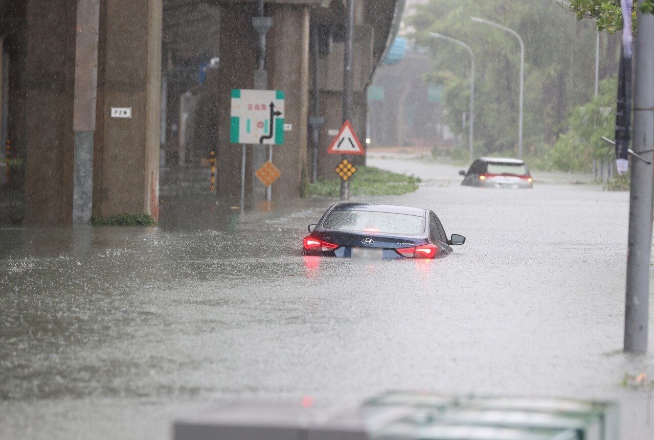 山陀兒颱風造成東部及中南部地區致災風雨,昨天更為北海岸帶來強降雨,導致多處積淹水、坍方。圖為山陀兒颱風來襲時,導致高雄市鼓山、左營及仁武部分區域嚴重淹水。圖/記者劉學聖攝