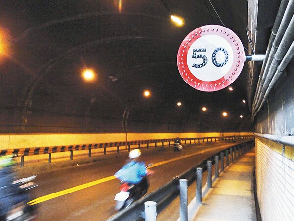 基隆市政府近日在自強隧道兩側入口,加設限速50公里閃光標誌,提醒駕駛人不要超速。 記者游明煌/攝影
