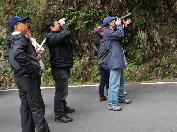 2014年「大雪山飛羽‧風情百種-賞鳥大賽」活動中,愛好賞鳥人士凝神搜尋鳥蹤。(記者黃玉鼎/攝影)