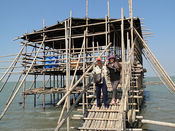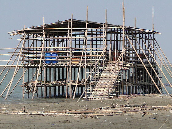 後來甚至更引發雲嘉兩縣轄區爭議,雲林縣府還由當時的副縣長高孟定親自帶隊,在舊竹篙寮釘上門牌號碼「雲林縣口湖鄉蚶寮126之101號」。不過隨著沙洲南移,如今門牌早已不見,且舊竹篙寮年久失修,被人淡忘,老夫妻年事已高,也已經不住在這海上屋,取而代之,是東石鄉當地民眾自己蓋新的「竹篙寮」,成為觀光新亮點。