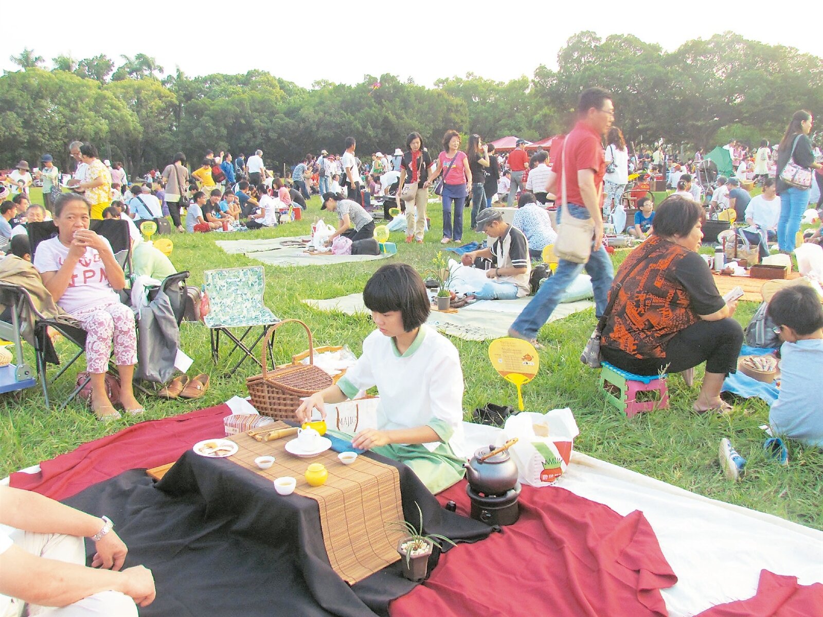 昨天星期天,中興新村操場的草坪上,大家一起泡茶,斜陽下,晚風徐來,到處飄著茶香,讓很多愛茶人士大呼過癮,他們說,這麼有氣質的活動,應該多辦幾次。